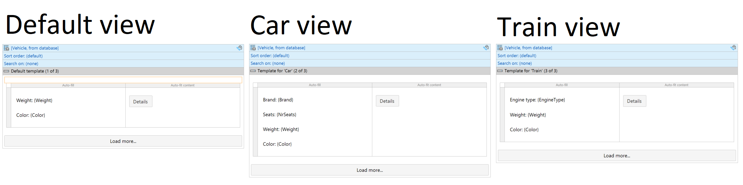 Vehicle 엔터티를 상속받은 엔터티별로 template을 지정할 수 있습니다.
