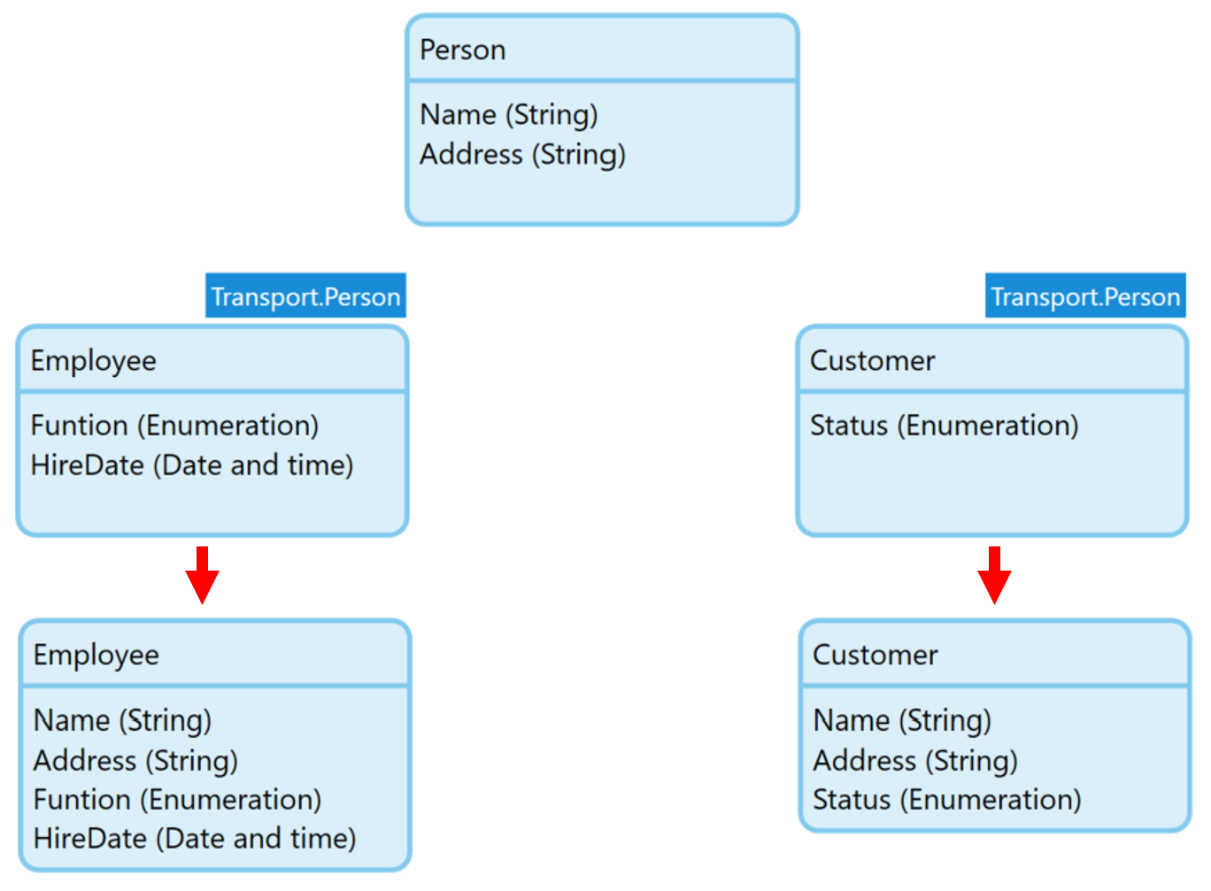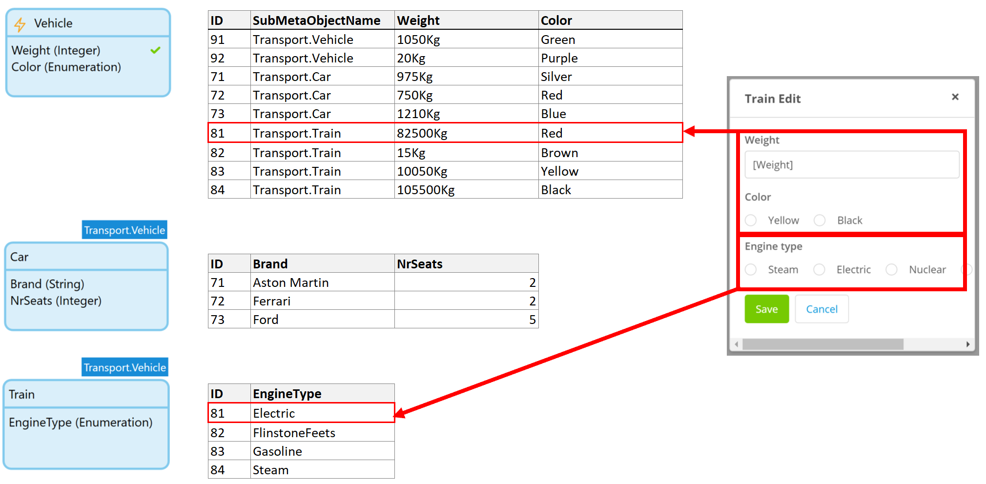 만약 Train 엔터티속 EngineType 특성에 접근하려 한다면 Train으로 캐스팅 한 후에만 액세스 가능합니다.