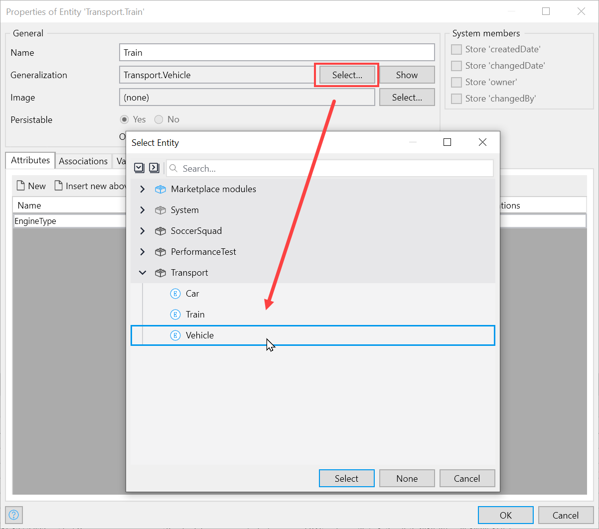 Mendix에서는 상속을 일반화 (generalization) 라고 한다. 예시로는 다음과 같습니다.