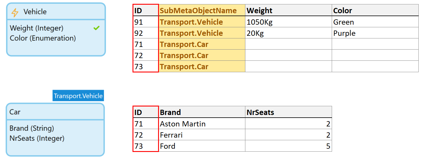 SubMetaObjectName에 해당하는 값은 Vehicle에서 객체를 만들었는지, Car에서 객체를 만들었는지에 따라 갈립니다.