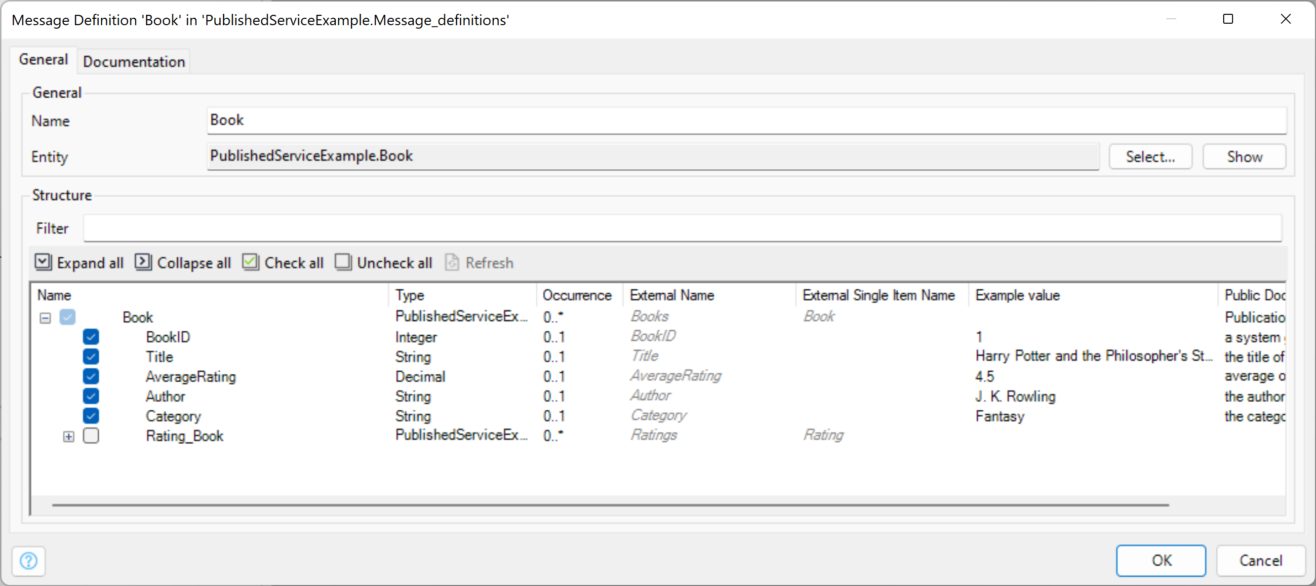 앱의 swagger 페이지에서 사용자를 위한 예를 만들려면 메시지 정의를 사용하여 매핑 문서를 만들어야 합니다. 예를 제공하면 사용자가 메시지 구조를 이해하는 데 큰 도움이 됩니다. 기본적으로 Mendix는 "string" 및 0과 같은 값으로 이를 채웁니다. 이것은 좋은 시작이지만 전송되는 메시지를 더 잘 나타내는 값을 사용하는 것이 좋습니다.