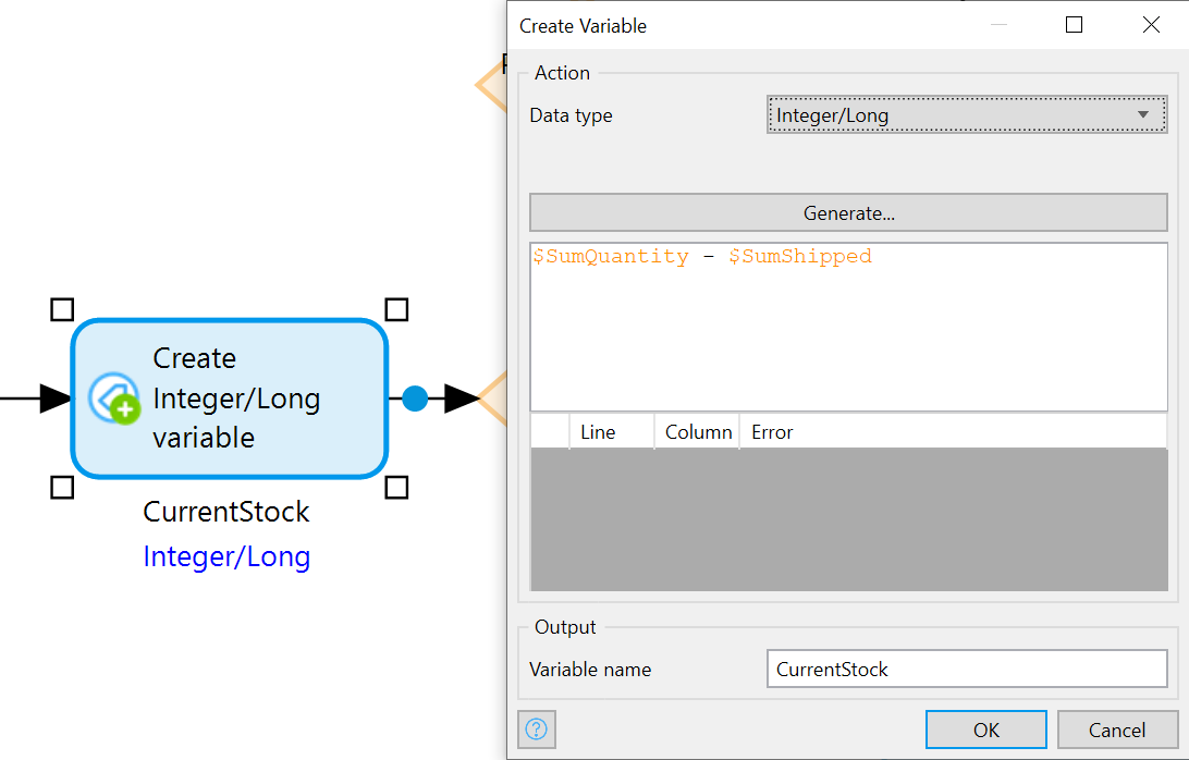 이 마이크로플로우에서 $SumQuantity – $SumShipped 계산을 세 번 사용합니다. 즉, 이 계산 결과를 변수에 저장하여 마이크로플로우 전체에서 재사용할 수 있도록 하는 것이 좋습니다.